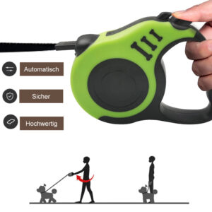 Mit unserer Flexiblen Leine schenkst du deinem vierbeinigen Freund mehr Bewegungsfreiheit während eures gemeinsamen Spaziergangs. Sie rollt automatisch ein und aus und ist insgesamt 5 Meter lang. So können Hunde die Umgebung großräumig erkunden, während du die Kontrolle in der Hand behältst. Solltest du deinen Hund lieber bei Fuß führen, kannst du einfach die Stop-Funktion nutzen und die Leine genau auf die gewünschte Länge anpassen. Sie ist hochwertig, stabil und liegt gut in der Hand.