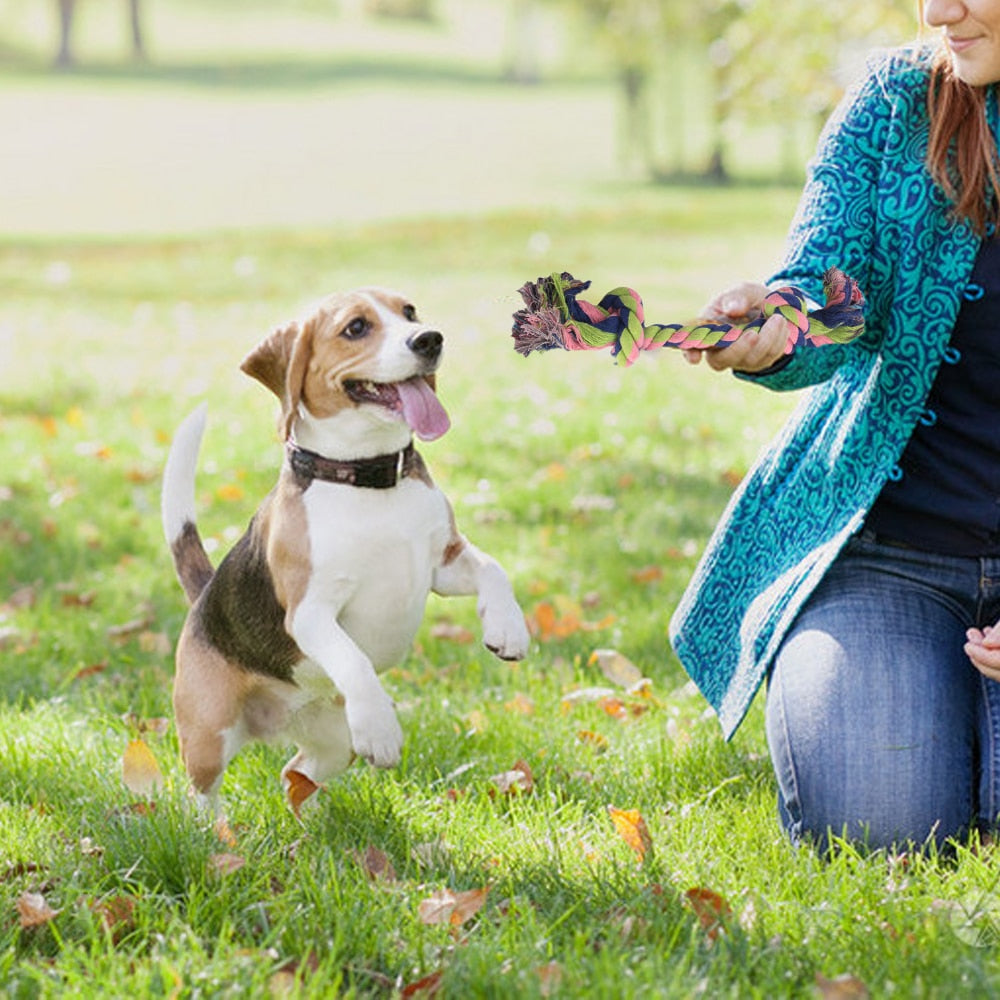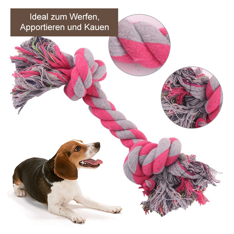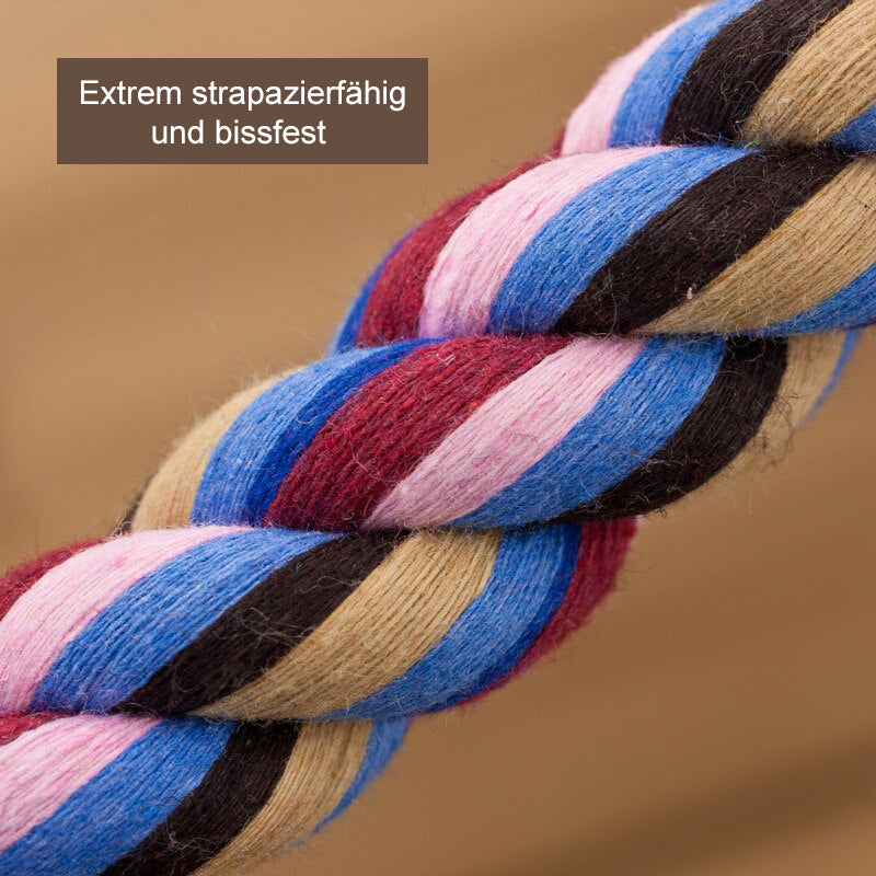 Unser Geflochtener Kauknochen ist extrem strapazierfähig und nicht so leicht kleinzukriegen. Er besteht zu 100% aus Baumwolle, die zu einem stabilen Seil verarbeitet und anschließend zum Hundespielzeug geflochten wurde. Dadurch ist der Knochen sehr robust und hält auch spitzen Hundezähnen stand. Es eignet sich auch zum Werfen, Apportieren und Zerren perfekt und sorgt für spaßige Stunden zwischen dir und deinem Vierbeiner.