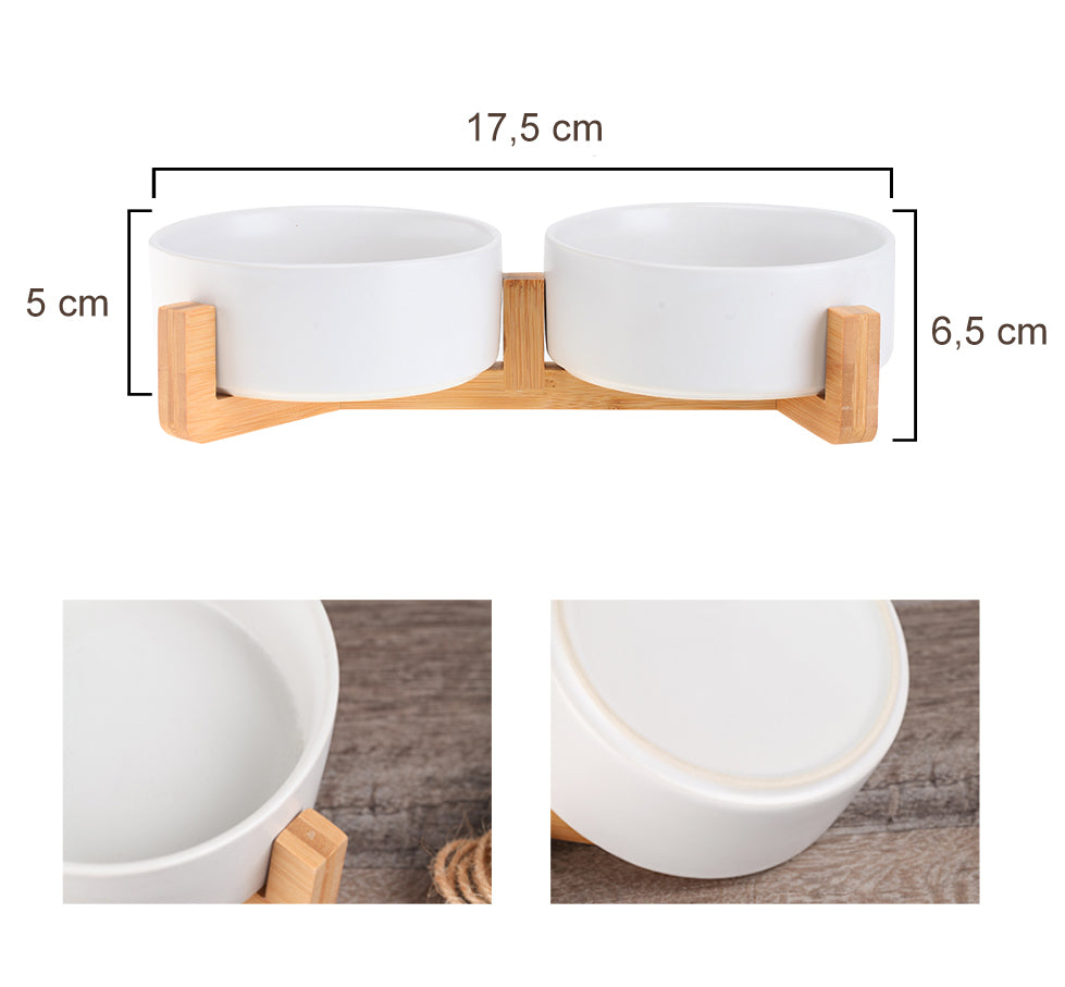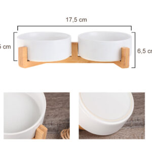 Unsere hochwertigen Futternäpfe aus Keramik heben sich durch ihr schlichtes, mattes Design und die hölzerne Halterung von herkömmlichen Futternäpfen ab. Sie bieten dank ihres Füllvermögens von 400 ml genügend Platz für Futter und Wasser und können einfach in der Spülmaschine gereinigt werden. Bei dieser Futterstation isst das Hundeauge definitiv mit!