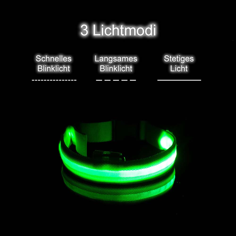 Besonders im Herbst und Winter, aber auch bei nächtlichen Spaziergängen ist es wichtig, dass du und dein Vierbeiner von Autofahrern gesehen werdet. Bei einem herkömmlichen Halsband ist das leider meistens nicht der Fall. Unser LED Halsband ist hingegen USB-aufladbar und leuchtet auffallend hell. Es besitzt drei Lichtmodi: Schnelles Blinklicht, langsames Blinklicht und stetiges Licht. Damit fallt ihr bei eurem Spaziergang definitiv auf, vermeidet Unfälle und seid auf der sicheren Seite. Unser LED Halsband ist individuell verstellbar und besitzt einen integrierten USB-Anschluss zum Aufladen.