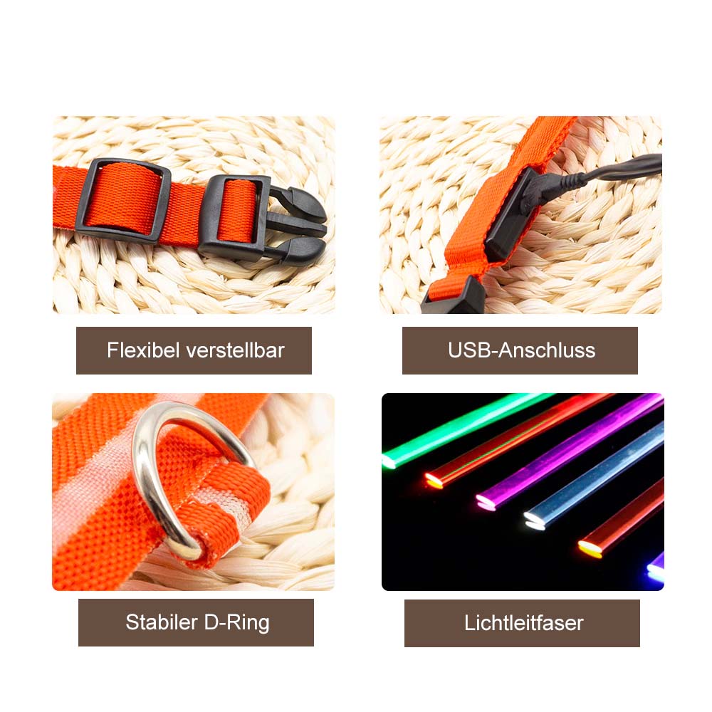 - 1x LED Halsband in bestellter Farbe und Größe (inkl. Ladekabel)