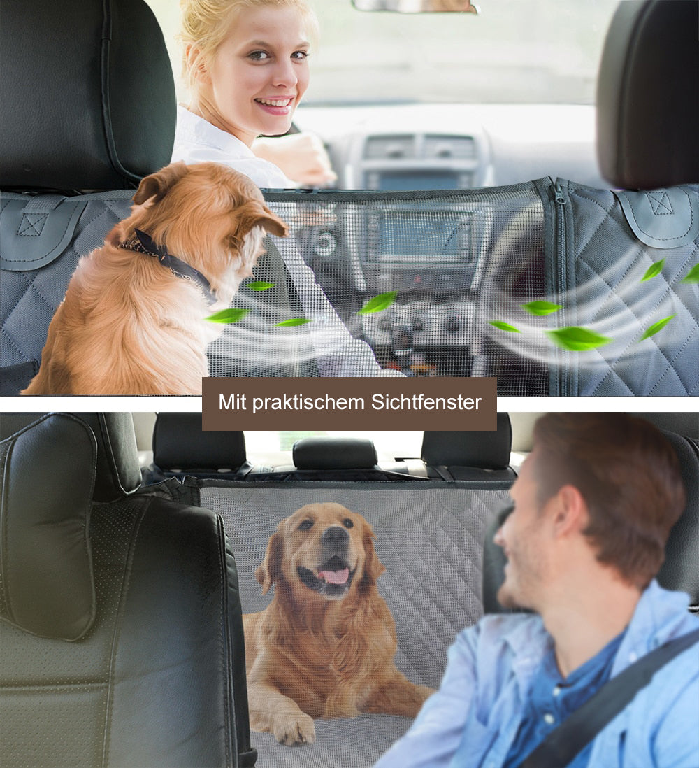 Mit unserem Reise Sitzschutz bleibt deine Rückbank immer sauber und dein Vierbeiner ist während der Fahrt absolut sicher. Dank des weichen Materials aus Polyester bietet er auch bei längeren Fahrten viel Komfort und schafft deinem Hund sein eigenes kleines Reich im Auto. Unser Sitzschutz wird einfach mithilfe der Laschen an allen Seiten angebracht und besitzt zusätzlich noch einen Reißverschluss zum einfachen Ein- und Aussteigen sowie zur Schonung des Autolacks. Es liegt ein Anschnallgurt bei, der den Hund während der Fahrt zuverlässig sichert. Dieser kann einfach durch die Aussparungen im Stoff in den Anschnaller eingeführt werden.