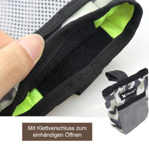 Unsere Snackbag bietet Platz für Leckerlis, Snacks, Kotbeutel und vieles mehr beim Gassigehen, Hundetraining oder Radfahren. Die Tasche kann einfach am Gürtel oder der Hosentasche befestigt werden und ist immer griffbereit. So hast du mehr Bewegungsfreiheit während deines Ausfluges und auch ohne Rucksack genügend Stauraum für die wichtigsten Utensilien. Der Beutel besitzt einen Klettverschluss, damit du ihn einhändig öffnen und schließen kannst. Das Innenfutter kann bei Bedarf einfach mit Wasser gewaschen werden. Besonders geeignet ist die Snackbag z.B. für das Agility.